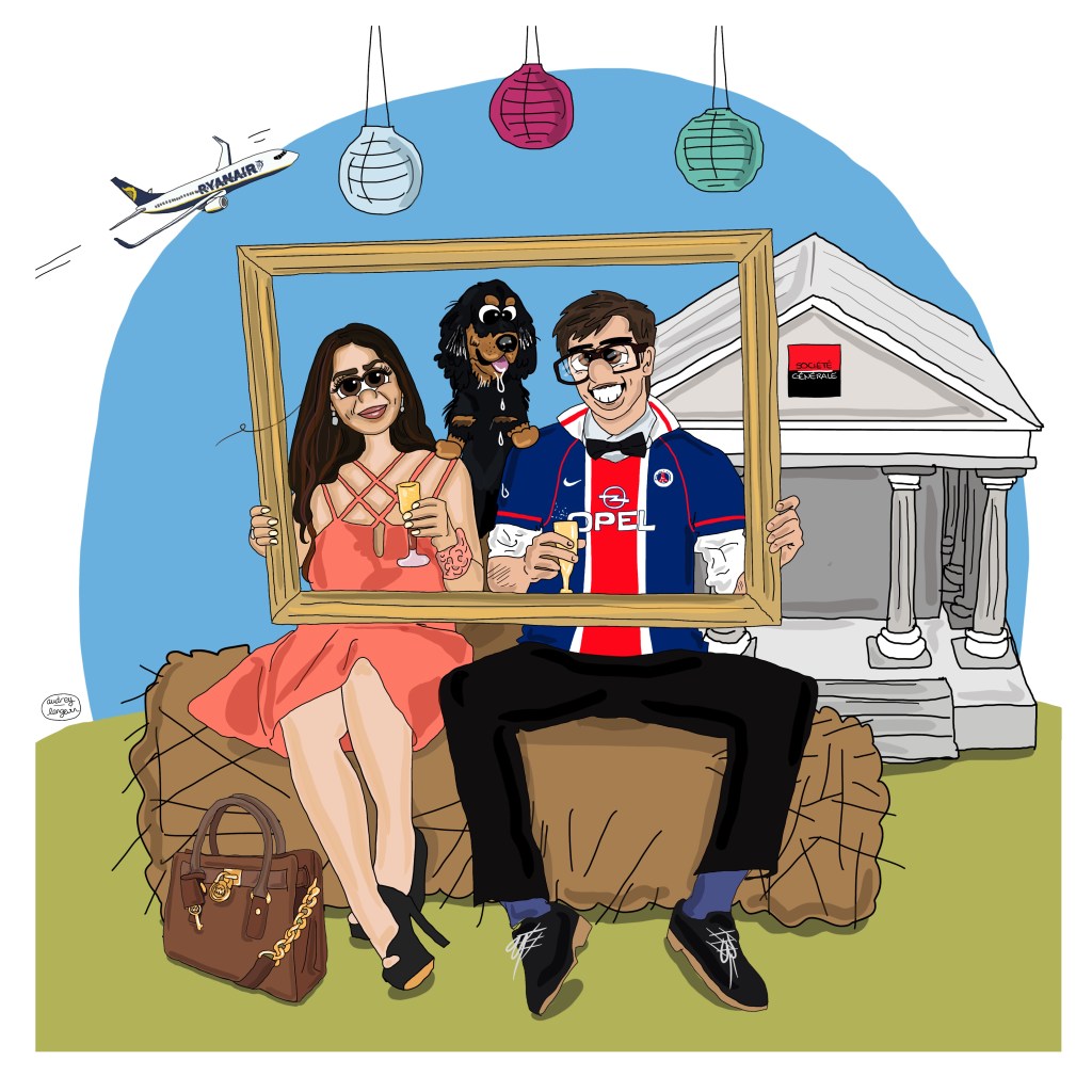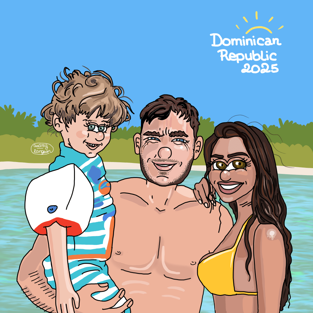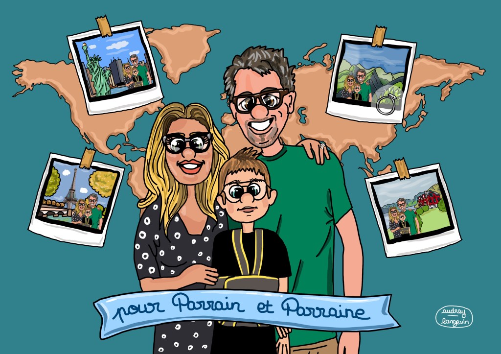 Order a caricature from Audrey L, and you will: laugh, make your friends and family envious, laugh again every time you see the caricature, and bring lightness and humour to your home… It is very fast, unusual and oh-so original! Bravo the artist!