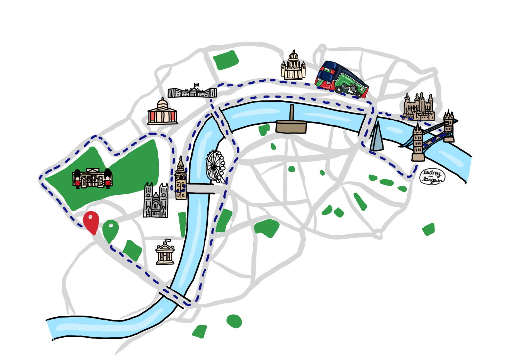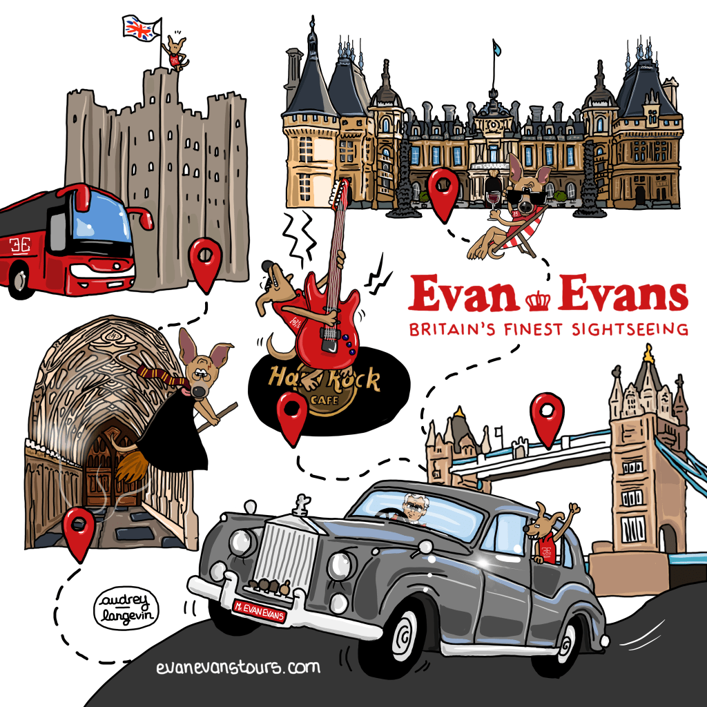 Illustrated tote bag design for a sightseeing tour company, Evan Evans Tours